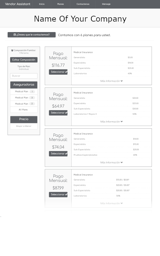 Show a great variety of individual and family plans. Let your clients choose the one that better fits their necessities.